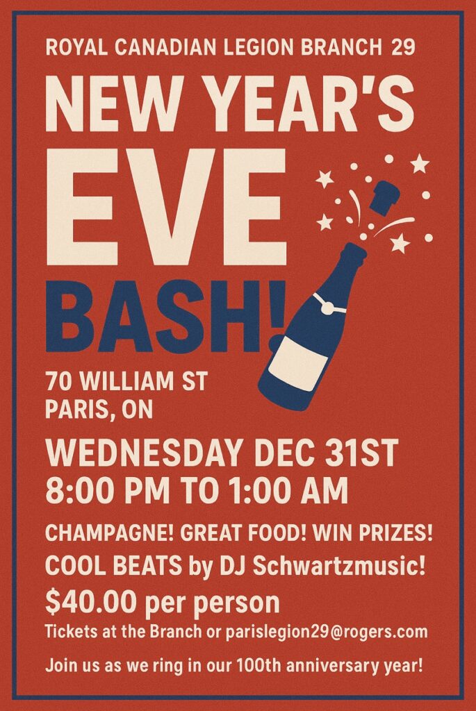 November 11 at the Cenotaph was a great success this year. A light snowfall reminded us of our fallen comrades—those who gave us the freedoms we enjoy today, including freedom of speech and the way we live. President Barry Humphrey